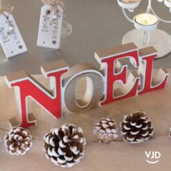 Décoration Lettres Noël Rouge Sur Socle 28,5 Cm En Bois
