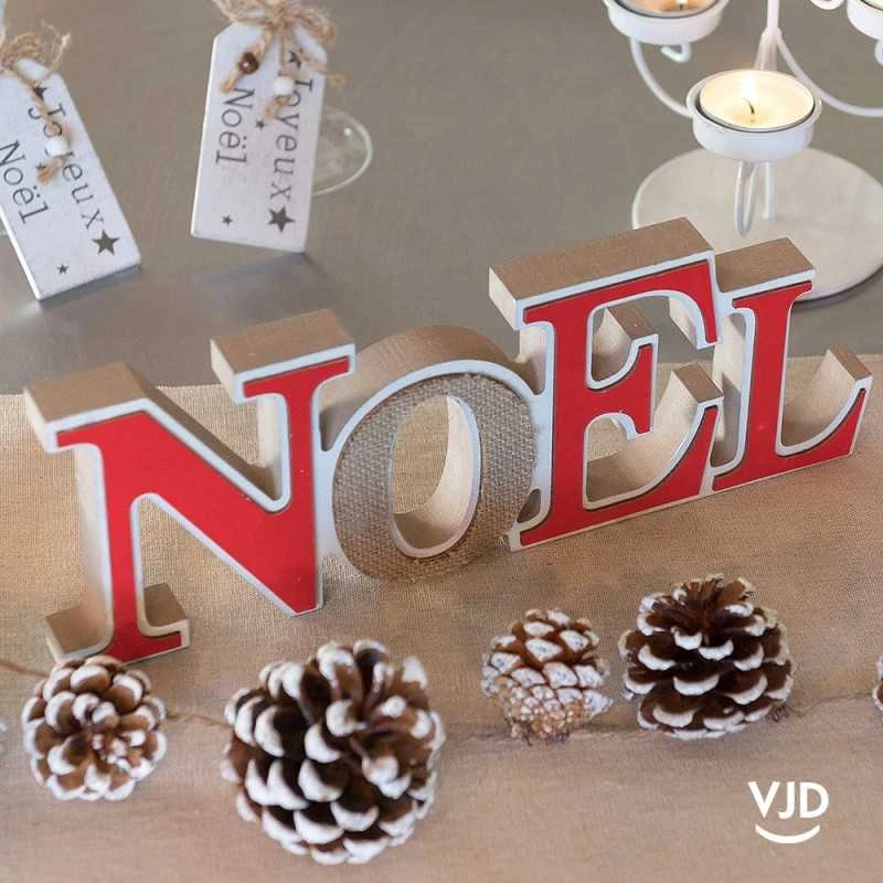 Décoration lettres Noël rouge sur socle 28,5 cm. En bois