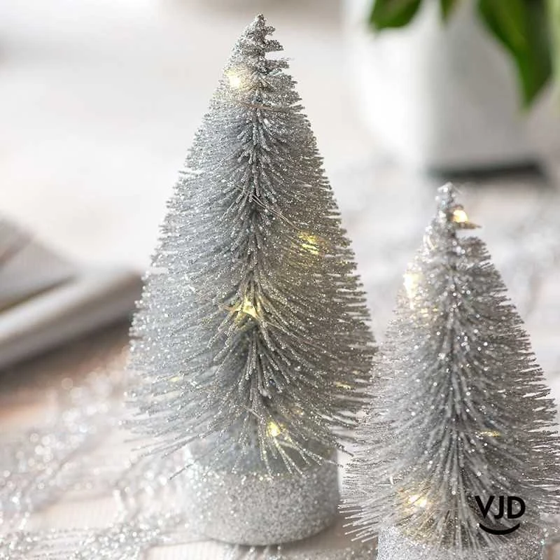 Emmenez vos convives dans la magie de Noël avec la décoration de table, ou de salle, sapin lumineux couleur argent.