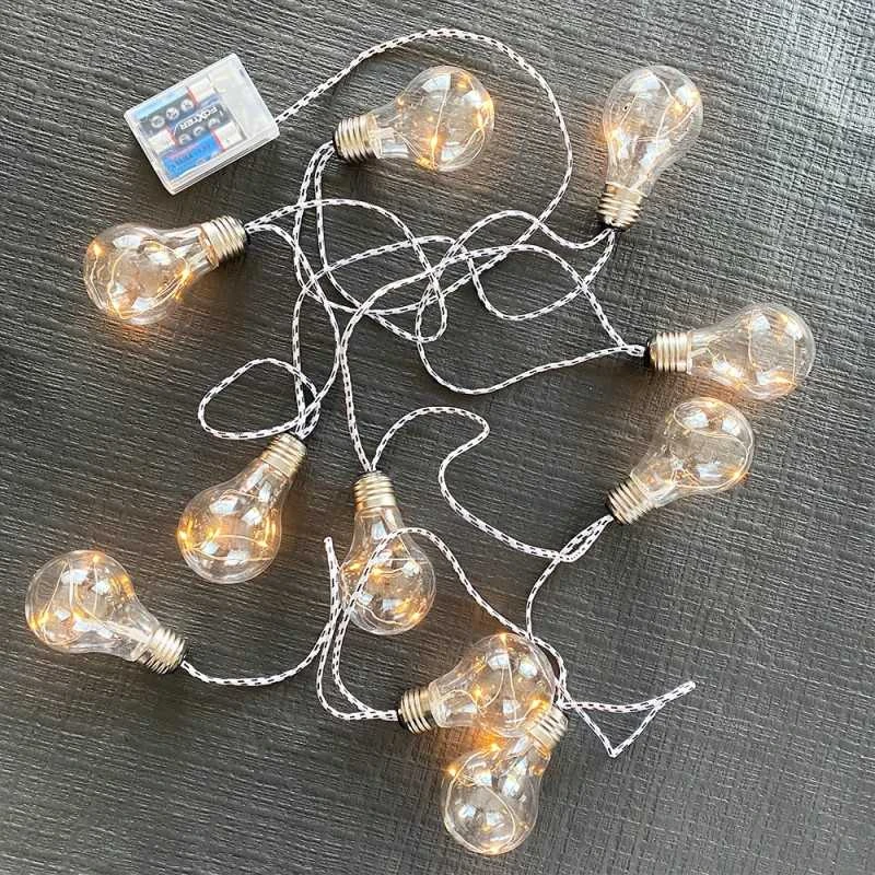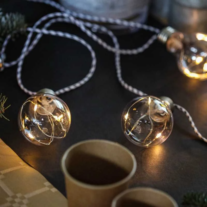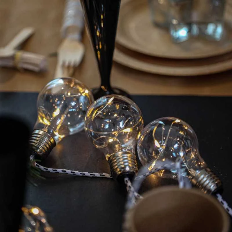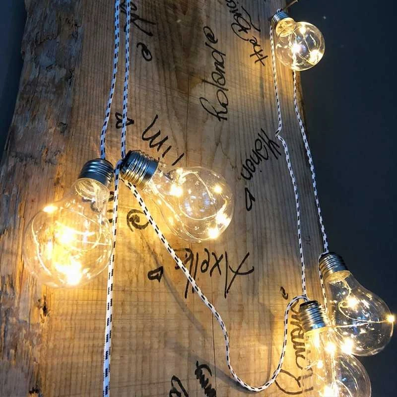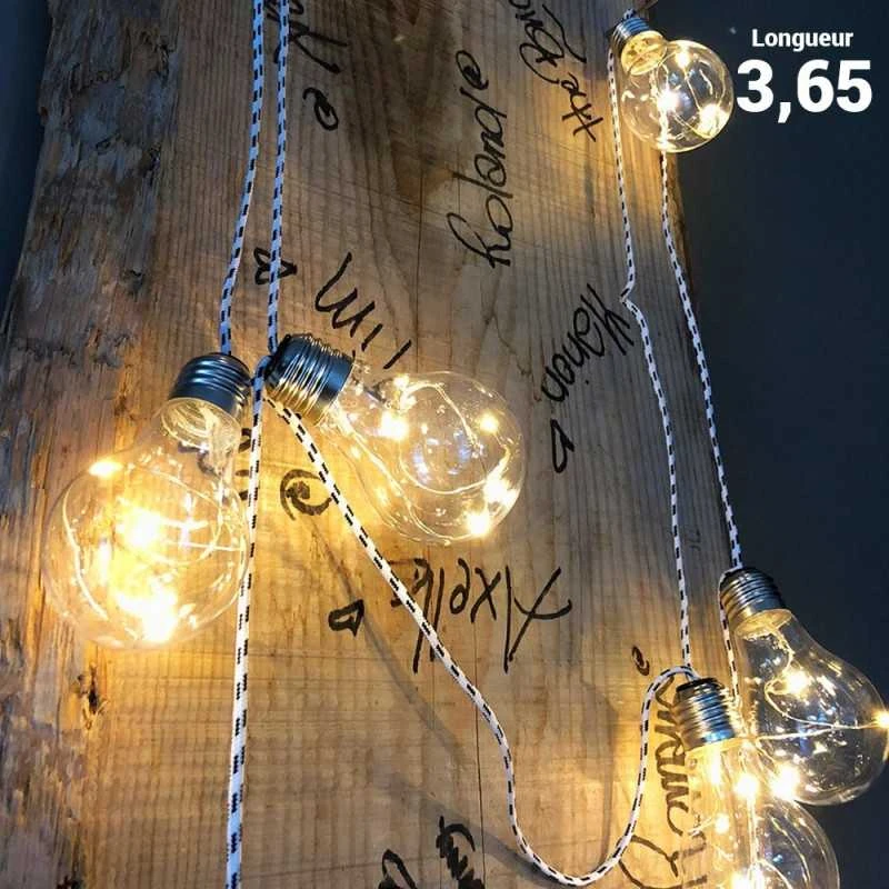 A l’origine, les guirlandes étaient faites de végétaux – feuilles, fleurs et même fruits. C’était la façon qu’avaient les riches familles de souhaiter la bienvenue à leurs invités et aussi de manifester l’abondance de leurs biens. De nos jours les guirlandes sont souvent lumineuses. Comme celle-ci faite d’une succession de dix ampoules. Sa lumière douce et chaleureuse fera un ruban lumineux sur une table, entre les feuilles d’une tonnelle ou le long d’un mur. En plus d’être chaleureuse cette guirlande donnera une touche d’élégance à votre ambiance.