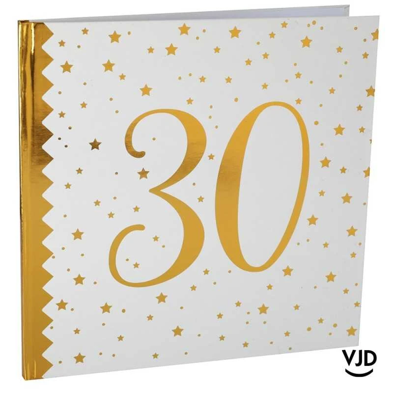 Voilà un livre d’or blanc et or métallisé 30 ans qui pourrait bien être la pièce maîtresse de votre cérémonie d’anniversaire !