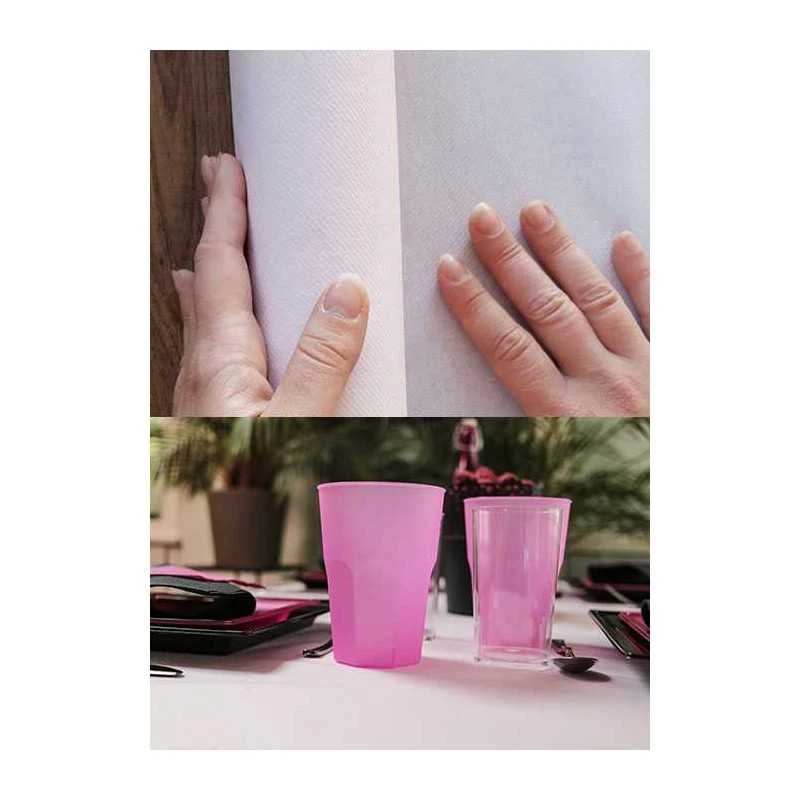 Nos nappes en non-tissé rose poudre fabriquées en France.