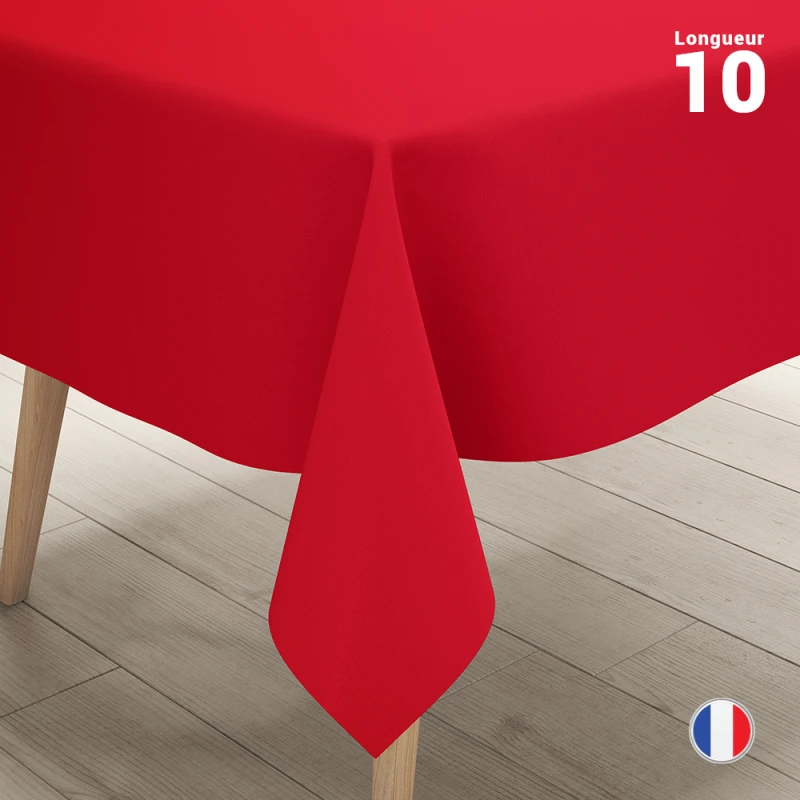 Et pour ce qui est de sa texture, cette nappe rouge est plus absorbante, plus agréable au toucher. Pourquoi cela ? Essentiellement parce qu’elle est fabriquée en non-tissé.