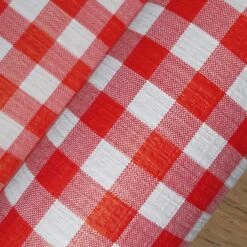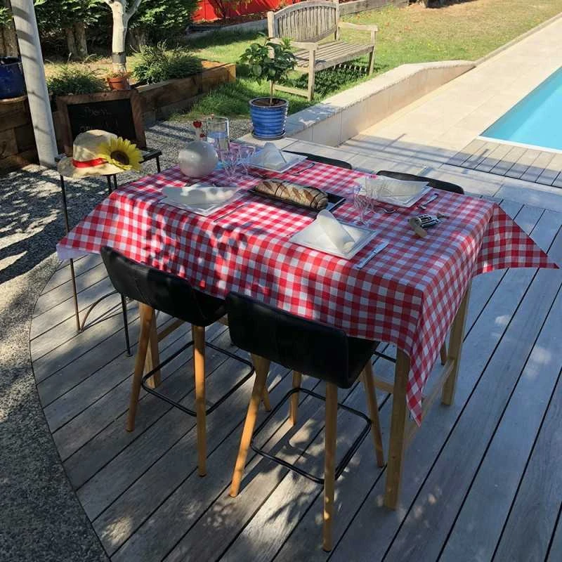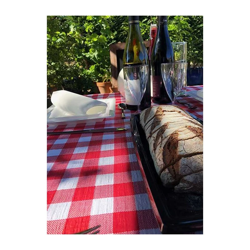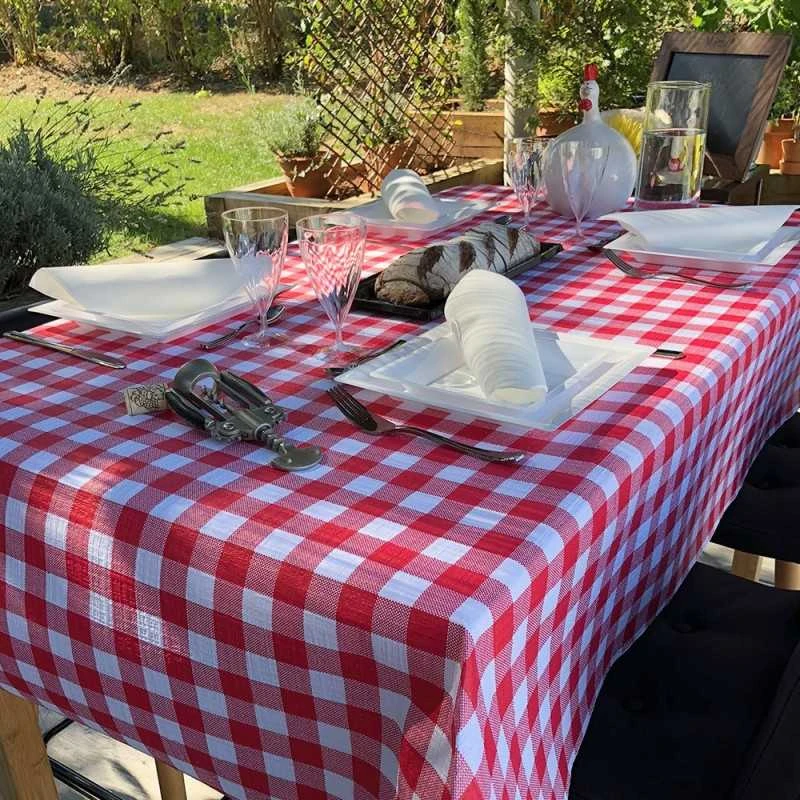 Nos nappes « toile de lin » Vichy Rouge fabriquées en France.