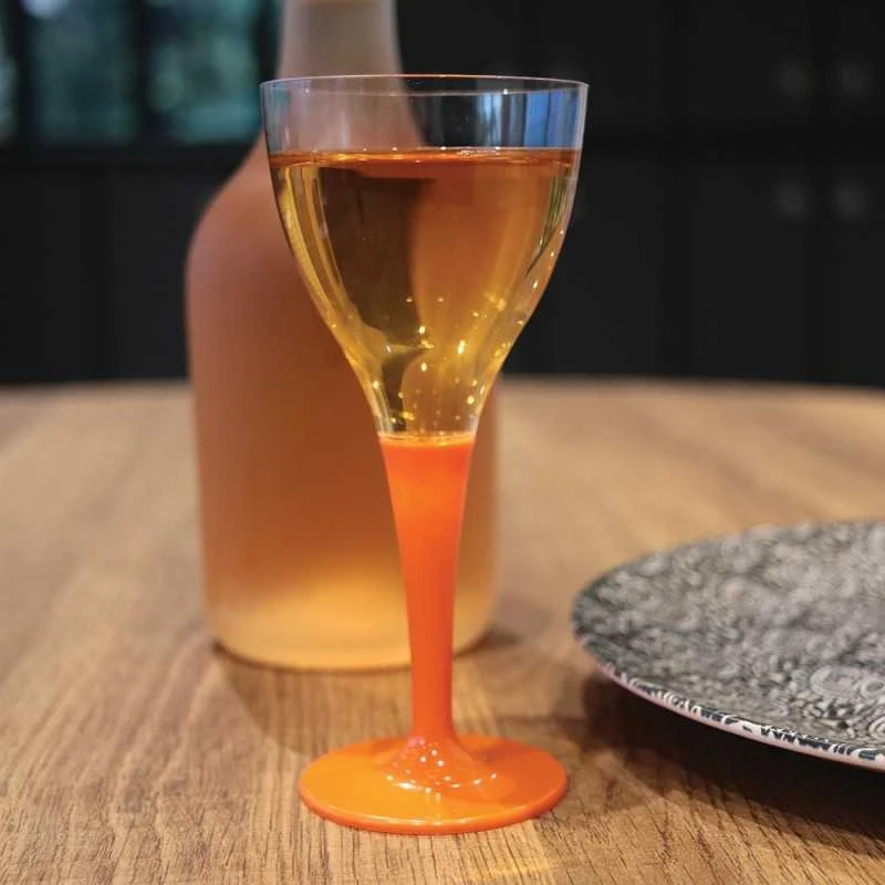 - 10 paquets de 10 verres à pied orange recyclables et réutilisables, soit 100 verres à pied orange !