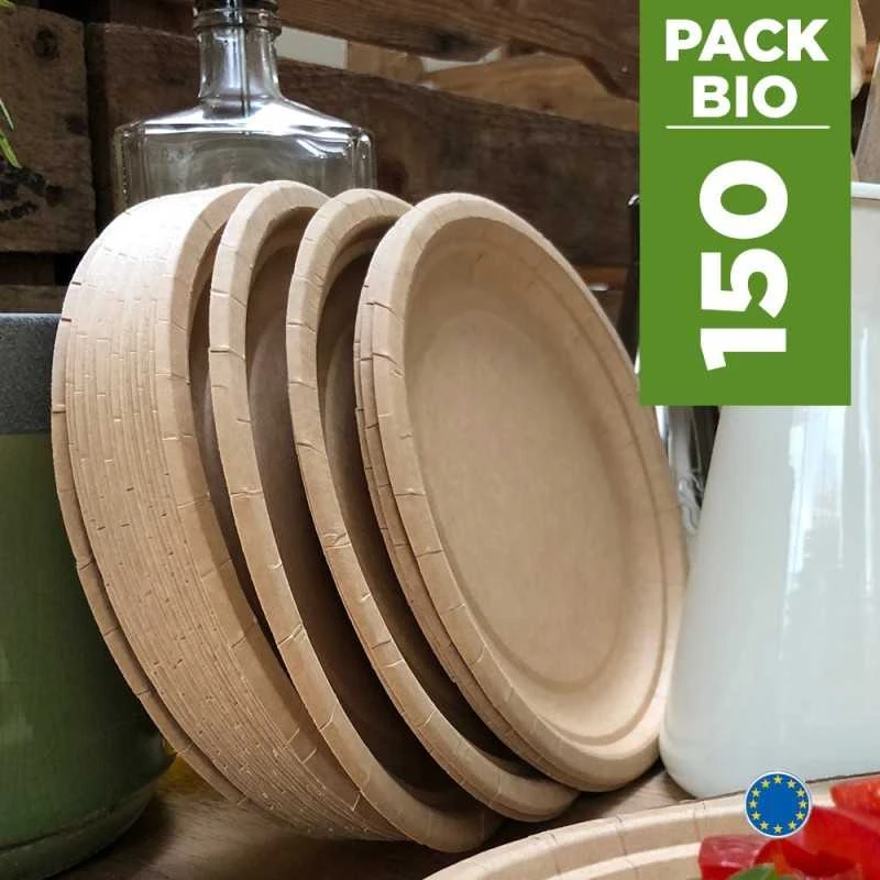 Dans ce pack, ce sont 150 assiettes kraft 17 cm qui feront à coup sûr le bonheur de vos invités.