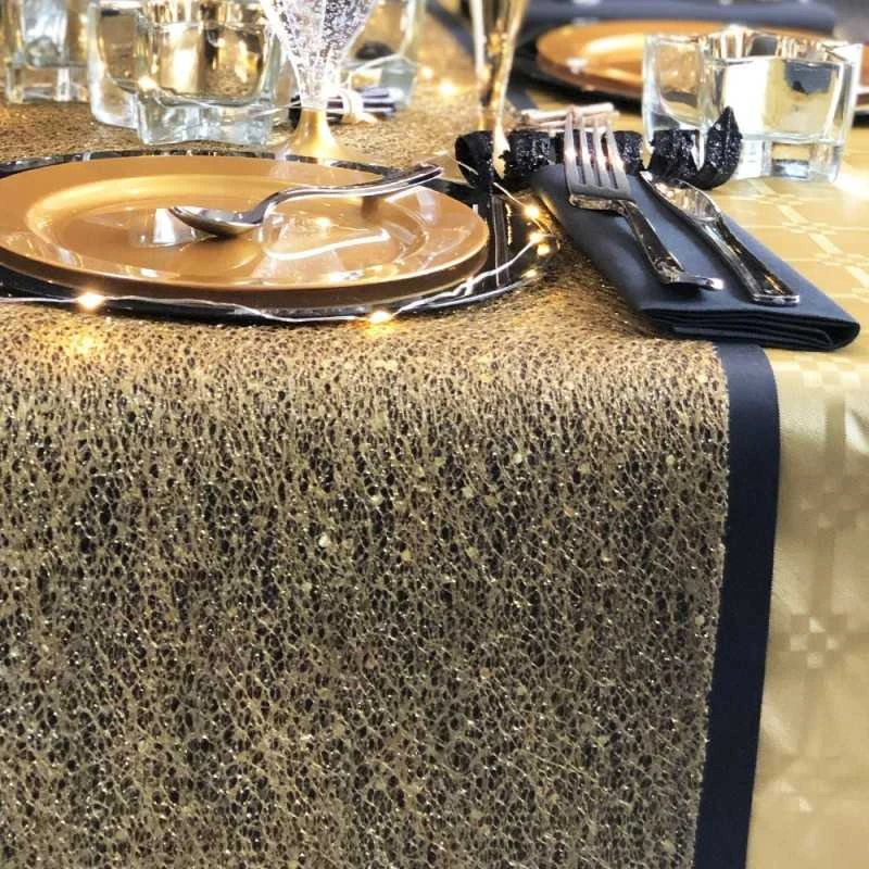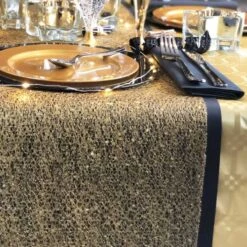 Notre pack 2 chemins de table glitter or et kraft noir à prix discount comprend :
