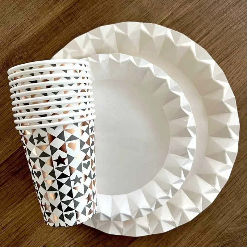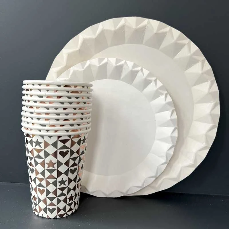 Pack 2 X 50 Assiettes Design 23-18 Cm + 50 Gobelets Carton
