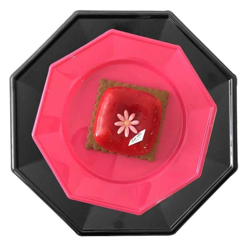 Notre pack 24 Assiettes octogonales noir-fuchsia à prix discount comprend :