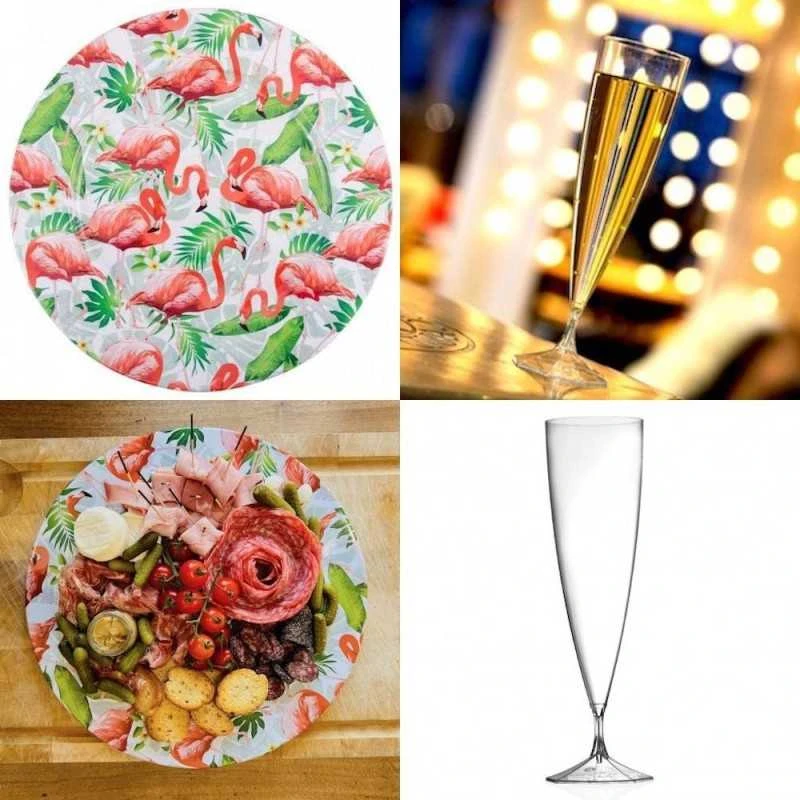 Cela peut contribuer à créer une atmosphère festive. Le champagne et les flûtes à champagne sont souvent associés aux occasions spéciales et à la célébration, et le plateau en acier décoré de flamants roses peut ajouter une touche de gaieté et de bonne humeur à l’événement.