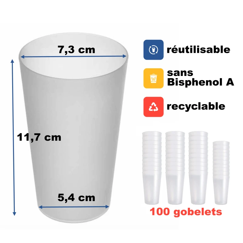 Réutilisables et éco-responsables : Les gobelets Ecocup sont réutilisables et respectueux de l’environnement, parfaits pour réduire les déchets lors de vos événements tout en étant pratiques et robustes.