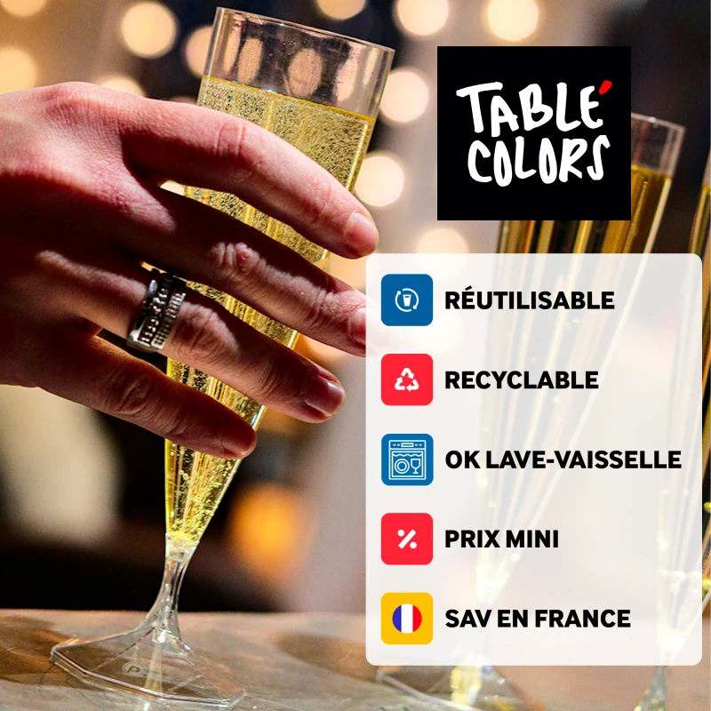 Robustesse et élégance : Ces verres sont fabriqués dans des matériaux solides et durables, tout en conservant une élégance qui impressionnera vos invités. Les flûtes à champagne et verres à vin ajoutent une touche de sophistication à votre table.