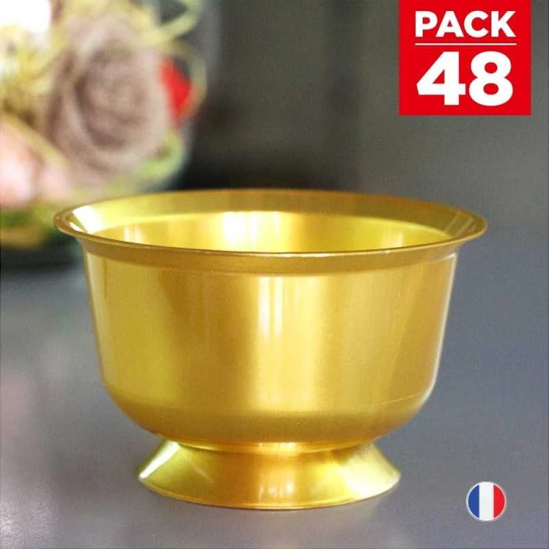 Dans ce pack, ce sont 48 coupelles or qui vous seront très utiles lors de vos apéritifs ou buffets. Sans compter qu’à table, ces coupelles pourront aussi vous rendre de grands services.