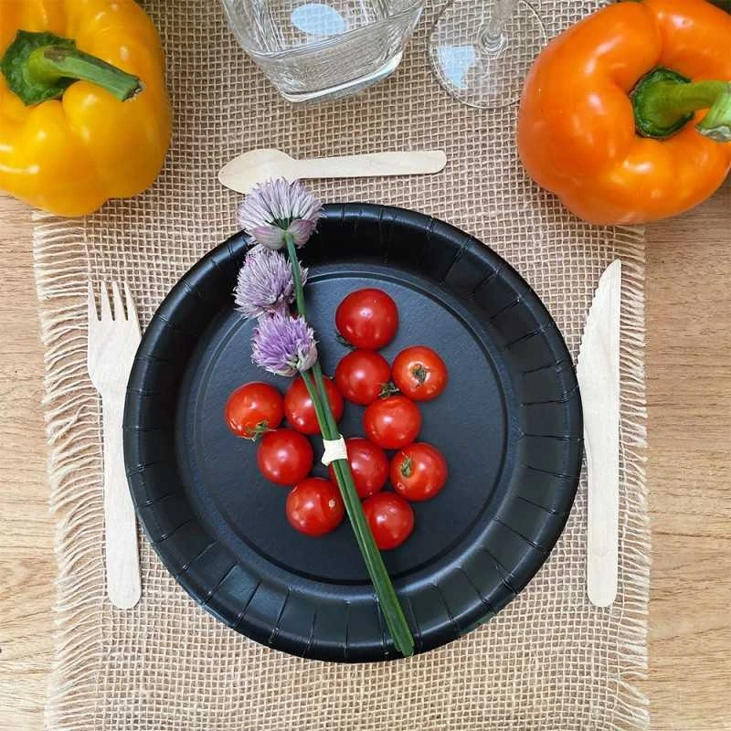 - 5 Paquets de 10 assiettes carton noires 22 cm.