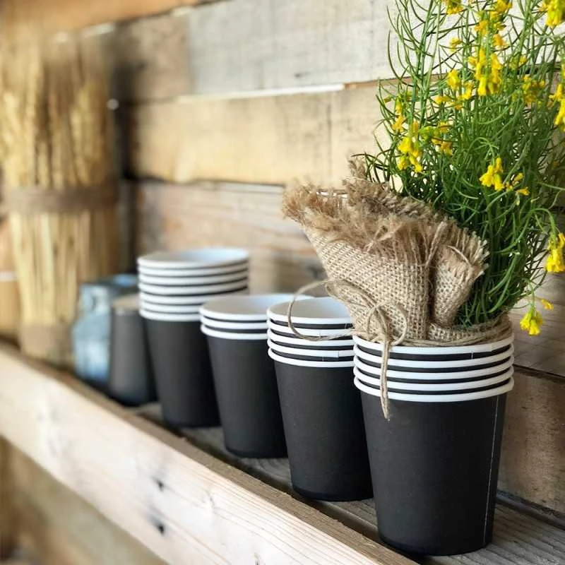 - 2 paquets de 25 gobelets carton noir de 21 cl.