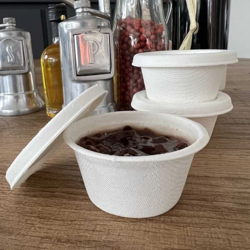 Ces verrines en fibres de canne de 6 cl avec couvercles peuvent être utilisées pour présenter des verrines lors de réceptions telles que les mariages ou les anniversaires.