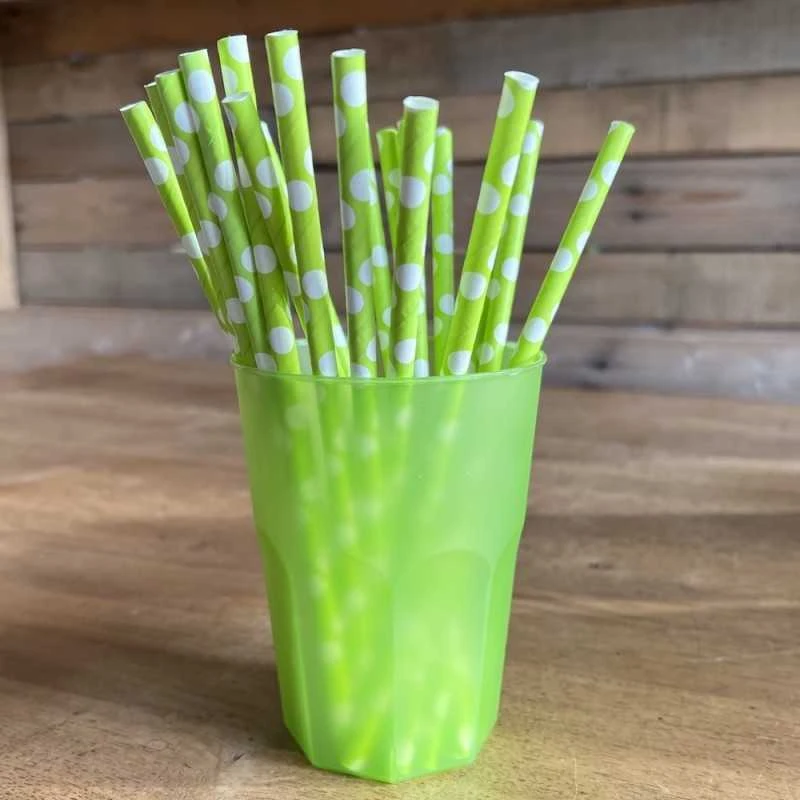 Avec leur papier cartonné, ces pailles à pois vertes et blanches sont loin d’être fragile, et avec leur grande taille de 19 cm, elles conviendront aussi bien pour les verres hauts ou verres cocktails.