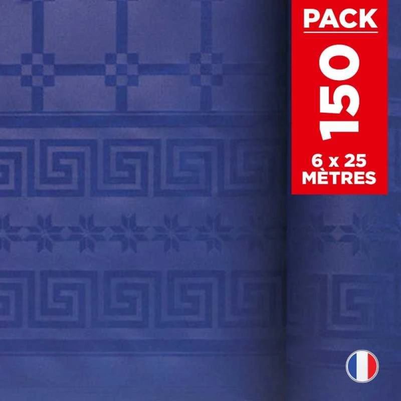 Notre pack 150 mètres de nappe en damassé bleu à prix discount comprend :