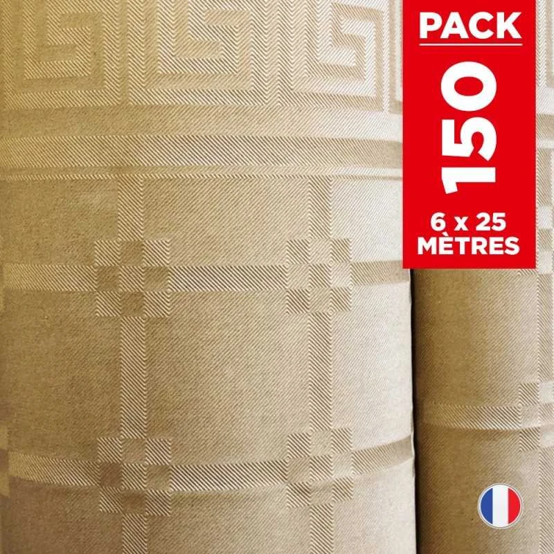 - 6 rouleaux de 25 mètres de nappe en damassé kraft, soit 150 mètres de nappage !