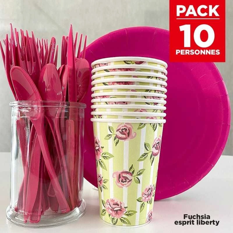 Notre pack Spécial 10 personnes fuchsia esprit liberty à prix discount comprend :