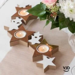 Porte Bougies Bois En Ruban D’étoiles Rose Gold