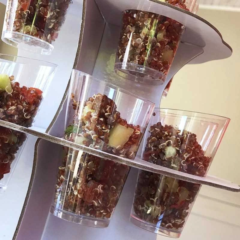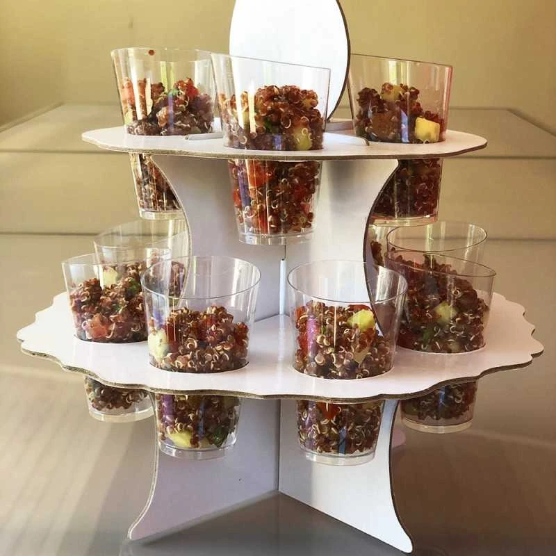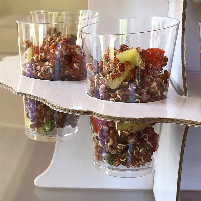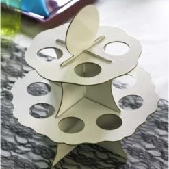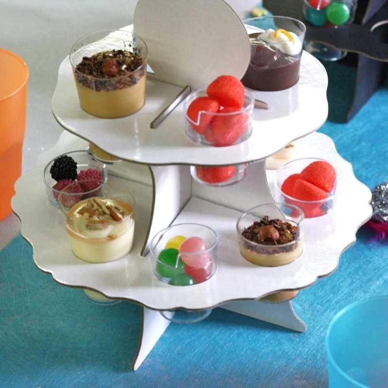 Celui-ci est en carton rigide, solide et stable. Il remplit ces fonctions à merveille et vous pourrez lui confier des quantités de missions : servir des gourmandises, recevoir des verrines et coupelles remplies de … ça, c’est à vous de voir ! Sa couleur blanche ajoute à sa commodité car cette teinte est réputée pour s’accorder avec toutes les autres. Les couleurs des assiettes, des serviettes, des verres et celles de vos préparations seront à la fête. Sûr qu’elles vont rencontrer du succès !
