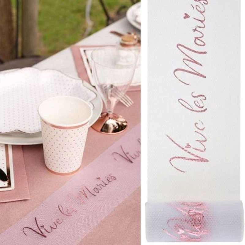 Vous pouvez célébrer l’amour avec ce merveilleux ruban tulle « vive les mariés » rose gold : que vive l’amour et vive les mariés !